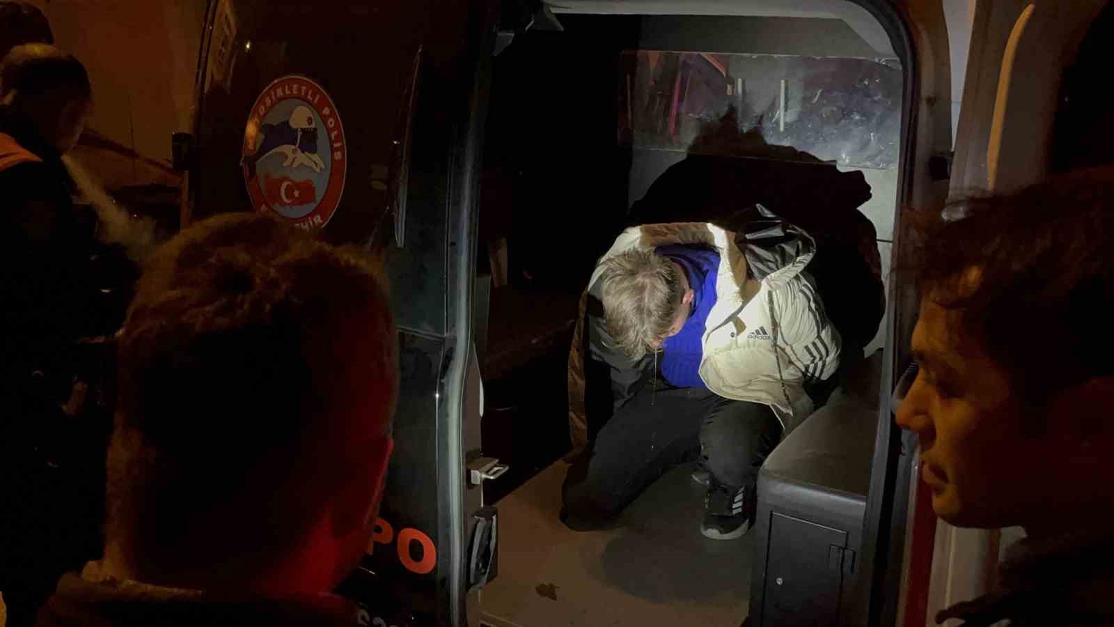 Aracı kullanan 18 yaşındaki B.E., polis ekiplerince araçtan indirildi. Direniş gösteren şahsa biber gazıyla müdahale edilerek ters kelepçe takıldı. Biber gazından etkilenen B.E.’ye, polisler tarafından su verilerek müdahale edildi.